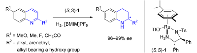12. Haifeng Zhou, Zhiwei Li, Zhijian Wang, Tianli Wang, Lijin Xu, Yanmei He, Qing-Hua Fan,* Jie Pan, Lianquan Gu and Albert S. C. Chan,* "Hydrogenation of Quinolines Using a Recyclable Phosphine-Free Chiral Cationic Ruthenium Catalyst: Enhancement of Catalyst Stability and Selectivity in an Ionic Liquid", Angew. Chem. Int. Ed. 2008, 47, 8464-8467.